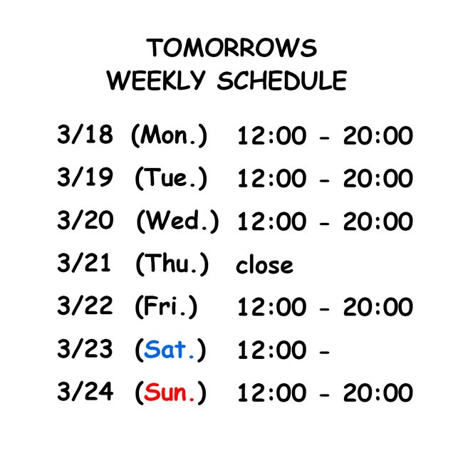今日もTOMORROWSは元気いっぱいでオープンしてます!